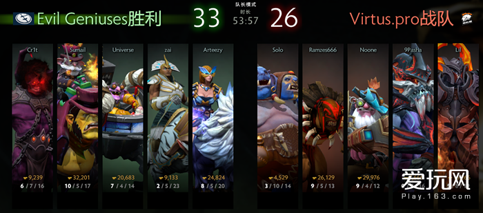 首局角逐中,EG居心把VP的最强系统放给了他们。VP也判断“接戏”,点出了他们的大鱼、蚂蚁和小狗。于是,EG就正在BP上展开了针对,用一套创意十脚的反手阵容将VP打的落花流水。Sumail正在本局角逐中操刀的熊兵士,是EG能拿下角逐的功臣。正在RTZ几乎没有什么的环境下,Sumail扛起了输出的沉担。从对线到团和,熊兵士永久一马当先冲入VP阵中。正在那波18分钟的环节团和中,Sumail先手打残鱼人,接着对拼击杀小狗,尔后带走冰魂,最初收割龙骑。整个操做过程行云流水趁热打铁,让VP间接敲出GG。