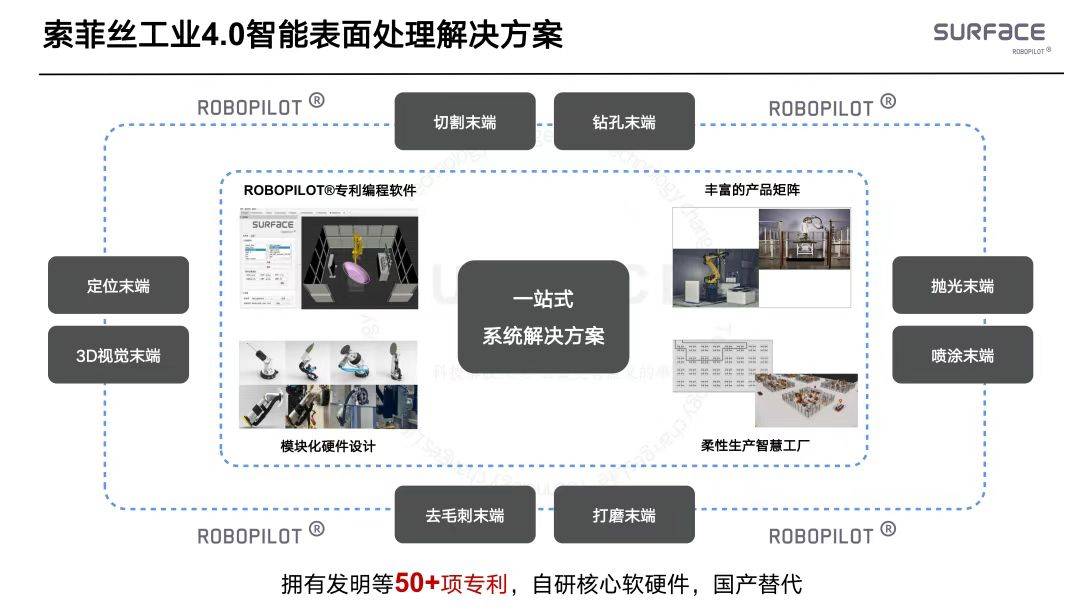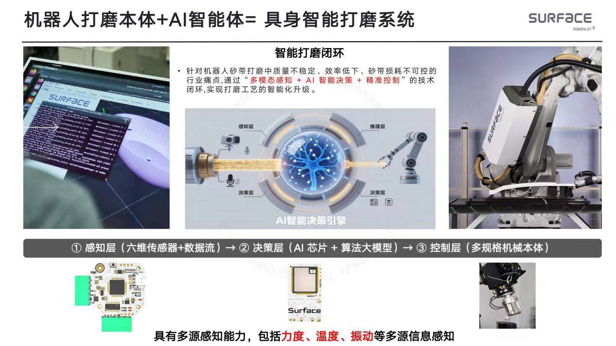 公司以自研的“机械脑”为焦点,融合深度3D视觉、多模态、AI决策引擎取高精度力控手艺,建立了“-决策-节制”一体化的智能工业生态,其自从研发ROBOPILOT®工业软件平台及AI智能辅材柜等产物,可满脚复合材料、金属、陶瓷等多种材料的概况处置需求。